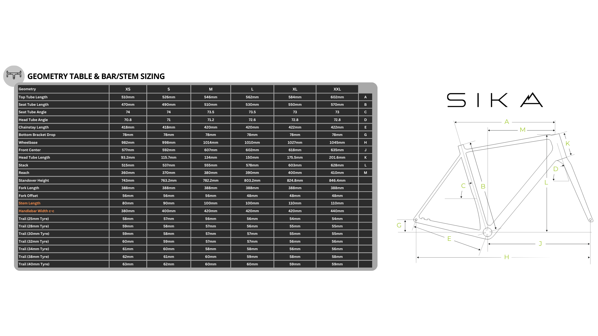 グリップと快適性を高めるために空気圧を下げたワイドタイヤを装着しても、操作のキレや安定感を失わないよう、緻密なジオメトリー設計が施されています。